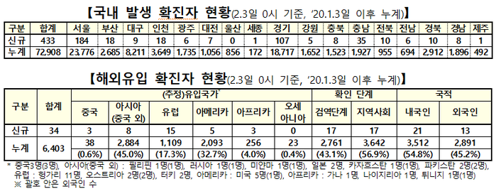 ▲ 3일 0시 기준 전날 대비 코로나19 국내발생 및 해외유입 확진자 현황. [출처= 중앙방역대책본부] |