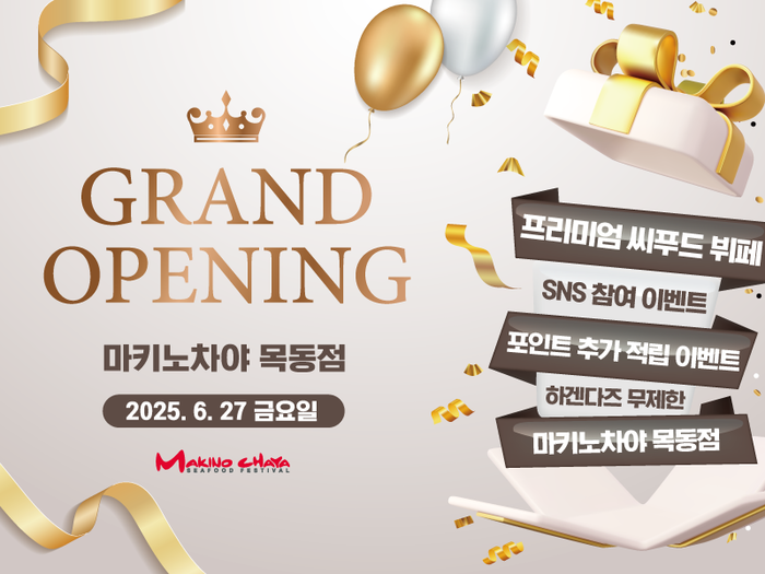 [메가경제=양대선 기자] 프리미엄 씨푸드 뷔페 마키노차야가 오는 27일 서울 양천구 목동 현대 하이페리온 2차 지하 1층에 신규 매장 ‘마키노차야 목동점’을 오픈한다고 25일 밝혔다. 이번 매장은 기존 ‘더아리엘 목동점’이 운영을 종료한 자리에 들어서며, 양천구는 물론 강서구, 영등포구 인근 지역 고객들의 높은 관심이 기대된다.