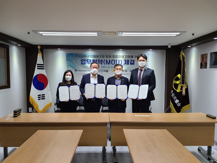 재단법인 피플과 노무법인 길, 법무법인 사람이 23일 한국금속공업협동조합과 여의도 조합 사무실에서 ‘한국금속공업협동조합 회원 준법경영 지원을 위한 업무협약(MOU)’을 체결했다.