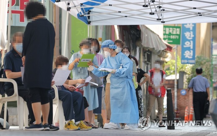 ▲ 24일 오전 서울 성북구보건소에 마련된 코로나19 선별진료소에서 시민들이 검사를 받기 위해 줄을 서 있다. [사진= 연합뉴스] |
