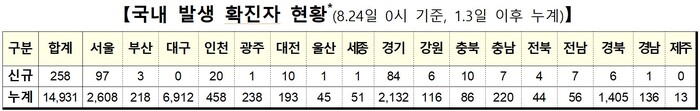 ▲ 24일 0시 기준 코로나19 국내발생 확진자 현황.[출처= 중앙방역대책본부] |
