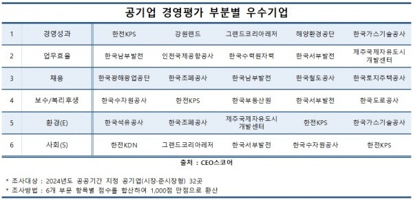 | ▲ 공기업 경영평가 우수기업 [사진=CEO스코어] |