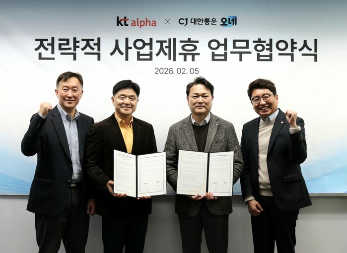 [메가경제=심영범 기자]KT알파 쇼핑이 물류기업 CJ대한통운과 전략적 업무 협약(MOU)을 체결하고 홈쇼핑 배송 경쟁력 강화에 나선다. KT알파 쇼핑은 지난 5일 서울 목동 KT알파 쇼핑 미디어센터에서 CJ대한통운과 전략적 물류 제휴를 맺고 ‘알파x오네’ 서비스를 도입했다고 6일 밝혔다. CJ대한통운은 2023년 통합 배송 브랜드 ‘오네(O-NE)’를
