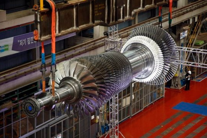 | ▲ 두산에너빌리티가 개발한 가스터빈의 로터 조립체. [사진=두산에너빌리티] |