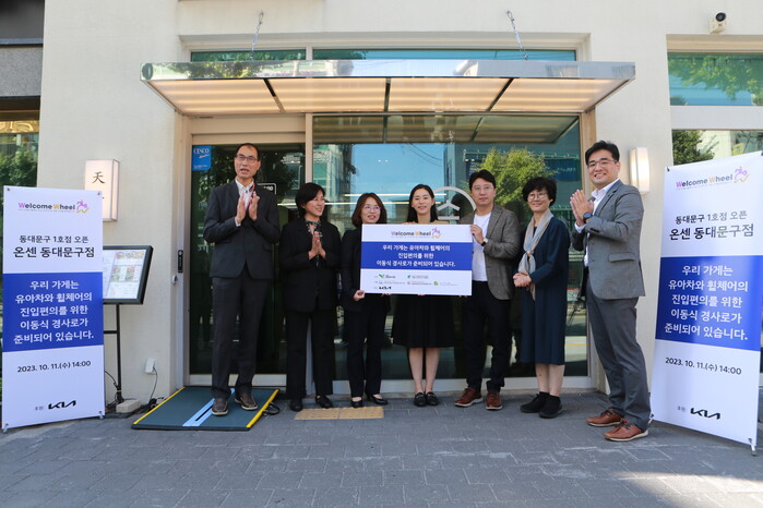 [메가경제=장준형 기자] 기아는 교통약자의 이동 편의 및 접근성 향상을 위한 '웰컴휠(Welcome wheel) 캠페인'을 진행하며 텐동전문점 '온센'(동대문구 소재)을 1호점으로 선정하고 이동식 경사로 전달식을 가졌다고 12일 밝혔다.