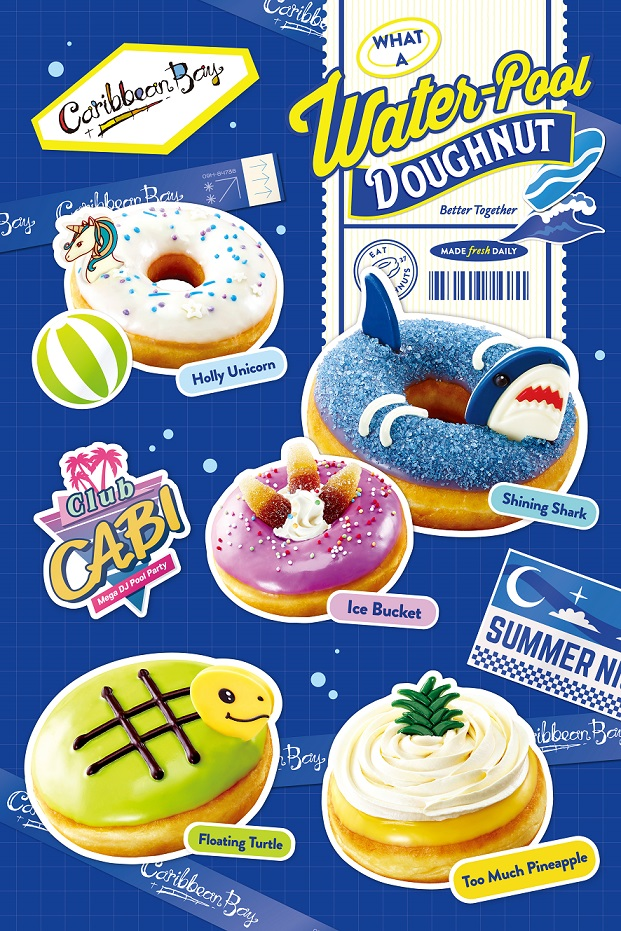 크리스피크림 도넛은 수영장의 튜브와 아이스 버킷 파인애플 등 여름을 떠올리는 요소들을 활용해 다가온 여름을 도넛으로 표현했다.