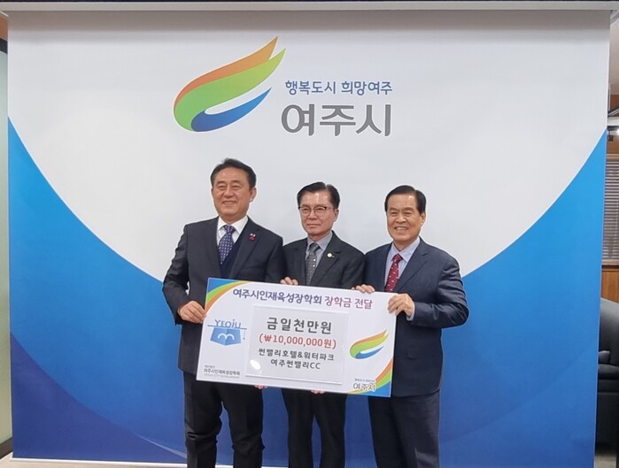 [메가경제=주영래 기자] 썬밸리호텔&워터파크(회장 이신근)와 여주썬밸리CC는 지난 11일 (재)여주시인재육성장학회(이사장 유영설, 명예이사장 이충우)에 장학금 1,000만원을 기부했다.