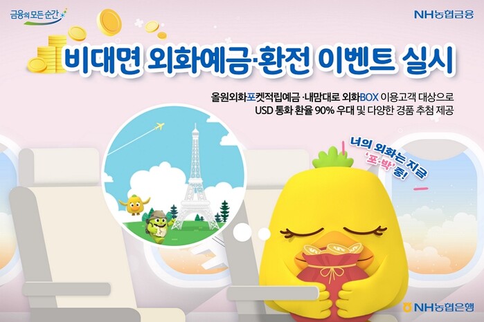 | ▲ NH농협은행이 비대면 외화예금·환전 이벤트를 내달 2일까지 실시한다. [이미지=NH농협은행 제공] |