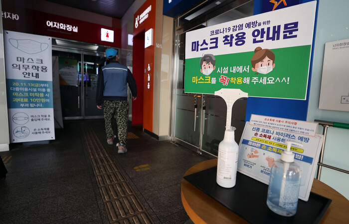 ▲ 설 연휴를 하루 앞둔 10일 서초구 서울만남의광장 휴게소(부산 방향)에 마스크 착용 안내문이 놓여있다. [서울= 연합뉴스] |