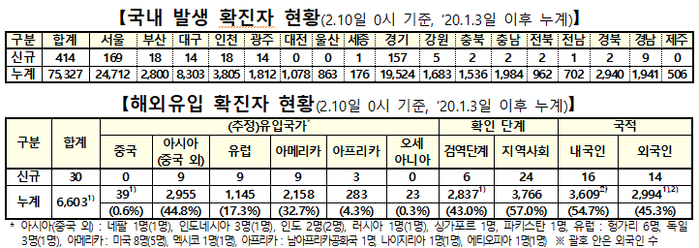 ▲ 10일 0시 기준 전날 대비 코로나19 국내 발생 및 해외유입 확진자 현황. [출처= 중앙방역대책본부] |