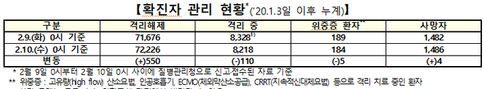 ▲ 10일 0시 기준 전날 대비 코로나19 확진자 관리 현황. [출처= 중앙방역대책본부] |