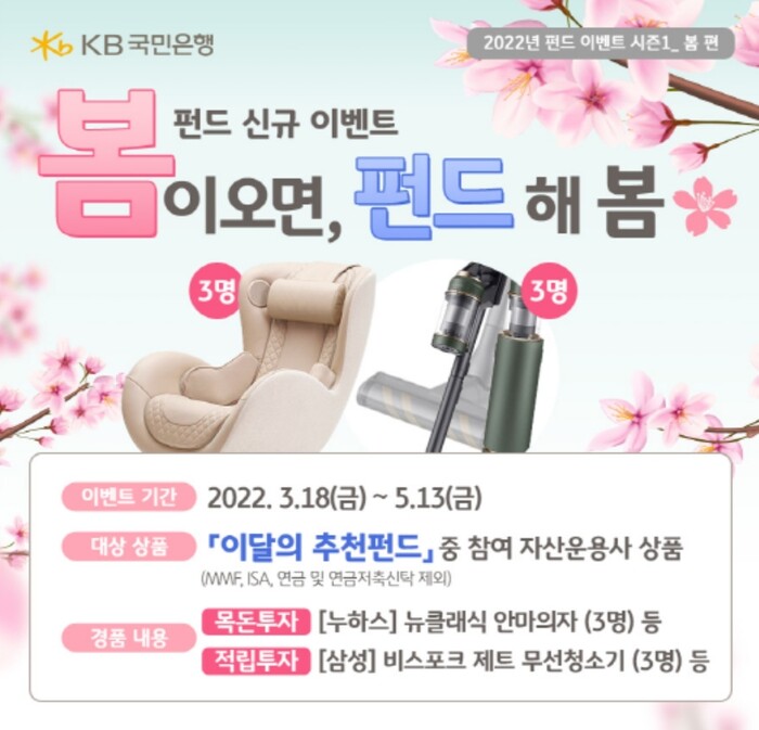 KB국민은행, '봄이 오면, 펀드 해 봄' 펀드 가입 이벤트···다양한 경품 제공