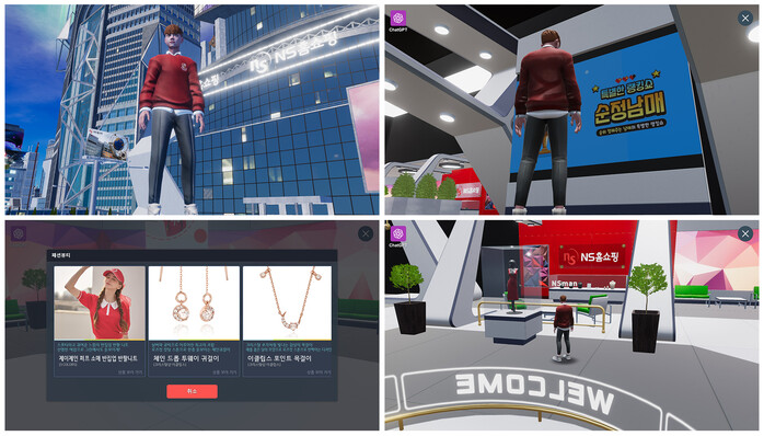 브랜드 소개와 즐길 거리뿐만 아니라, 모바일 앱 또는 온라인몰로 연결되는 커머스 기능을 통해 NS mall 상품을 바로 구매할 수 있어 메타버스 안에서 현실 세계의 실제 쇼핑도 함께 즐길 수 있다. 또한, 인공지능(AI) 챗봇 서비스 'ChatGPT' 기능도 탑재되어, 쉽고 간편하게 인공지능 대화 서비스를 경험해 볼 수 있다.