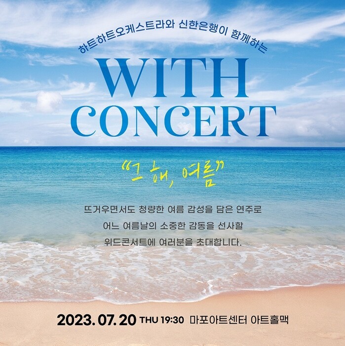 [메가경제=오민아 기자] 신한은행(은행장 정상혁)은 20일 하트하트오케스트라와 함께 서울시 마포구에 위치한 마포아트센터 아트홀맥에서 ‘With Concert, 그 해 여름’을 개최한다고 11일 밝혔다.