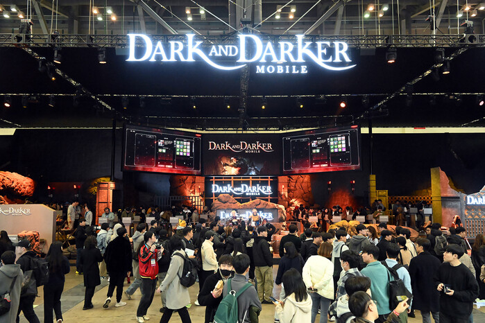 크래프톤은 다크앤다커 모바일을 관람객들이 게임을 직접 플레이해볼 수 있는 시연대 70석을 마련했다. 지스타 개막일인 16일 관람객들은 다크앤다커 모바일의 시연을 위해 2시간 이상 대기했다.