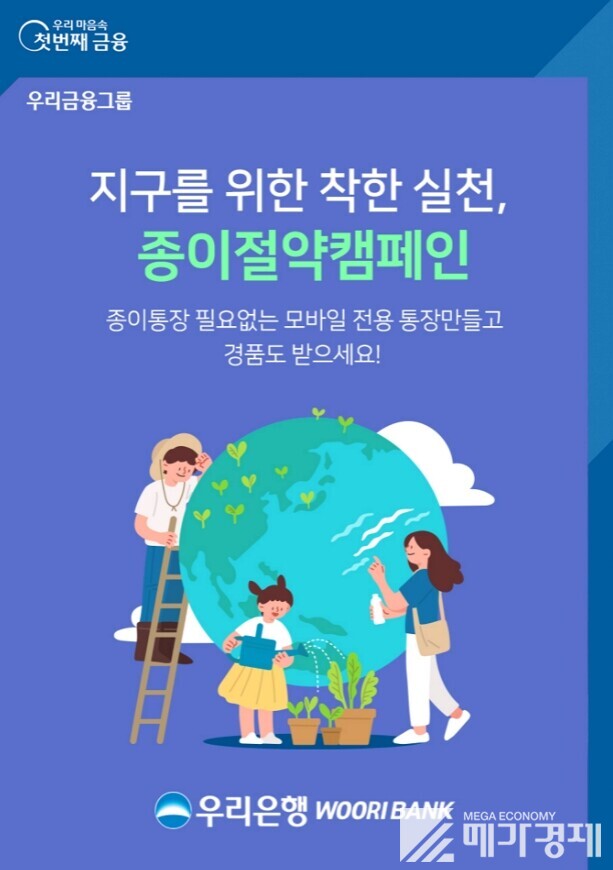 우리금융지주의 자회사 우리은행(은행장 권광석)은 환경 보호 및 ESG 경영실천을 위해 종이절약 캠페인 및 이벤트를 6월 30일까지 시행한다고 10일 밝혔다.
