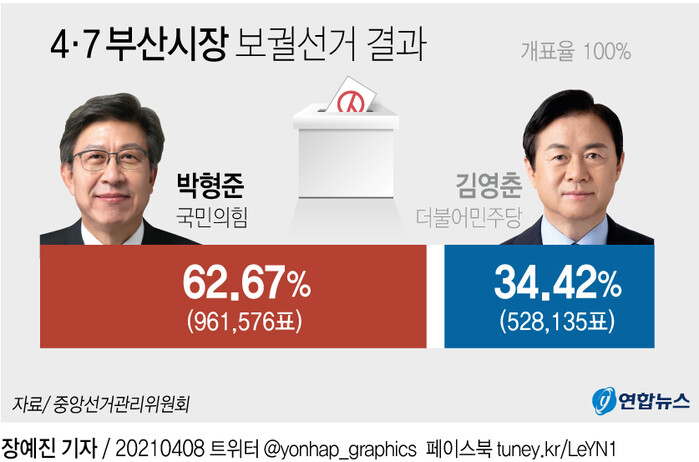 ▲ 4·7 부산시장 보궐선거 결과. [그래픽= 연합뉴스] |