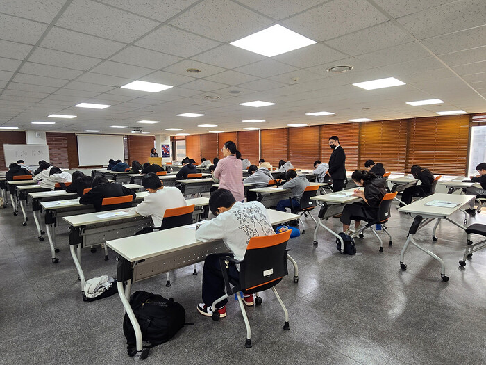 | ▲ 구몬수학 인정테스트 시험 현장 [사진=교원] |