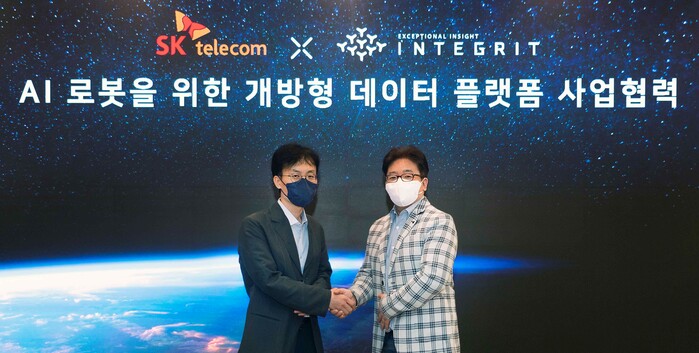 SK텔레콤이 인공지능(AI)기반 로보틱스 플랫폼 전문기업 인티그리트와 ‘개방형 로보틱스 데이터 플랫폼’ 개발을 위한 업무협약(MOU)을 체결했다고 12일 밝혔다.