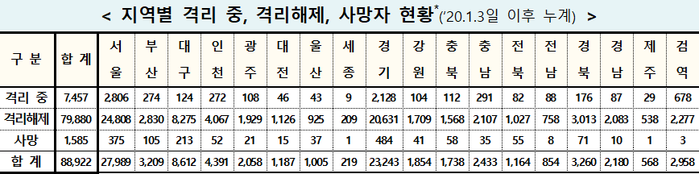 전날 하루 추가 완치된 확진자는 393명으로 누적 격리해제자는 7만9880명이 됐다. 완치율은 89.83%를 보였다. 격리치료 중인 환자는 전날보다 9명이 늘면서 총 7457명이다.