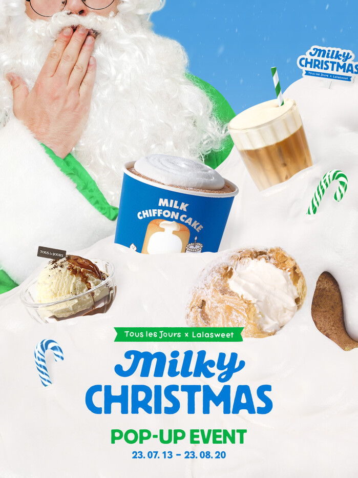 먼저, 라라스윗과의 컬래버레이션을 기념해 뚜레쥬르 플래그십 스토어 제일제당센터점에서 무더운 여름 시원한 반전을 담아낸 ‘밀키 크리스마스(Milky CHRISTMAS)’ 콘셉트로 팝업 이벤트를 진행한다. 신제품의 주요 원재료인 ‘생우유 크림’의 특징을 표현했고, 공간 전반에서 크리스마스 분위기를 느낄 수 있다. 라라스윗 컬래버 신제품을 미리 만나볼 수 있는 기회 및 다양한 이벤트를 마련했으며, 오는 8월 20일까지 한정 운영된다.