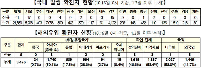 ▲ 16일 0시 기준 코로나19 국내발생 및 해외유입 확진자 현황. [출처= 중앙방역대책본부] |