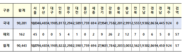 비수도권에서는 부산이 6483명으로 가장 많고, 경남(4445명)과 대구(4190명)는 4천명대를 기록했다. 또 충남(2991명), 경북(2863명), 대전(2589명), 전북(2555명), 광주(2294명), 충북(2201명) 등 6개 시도는 2천명대를 보였다.