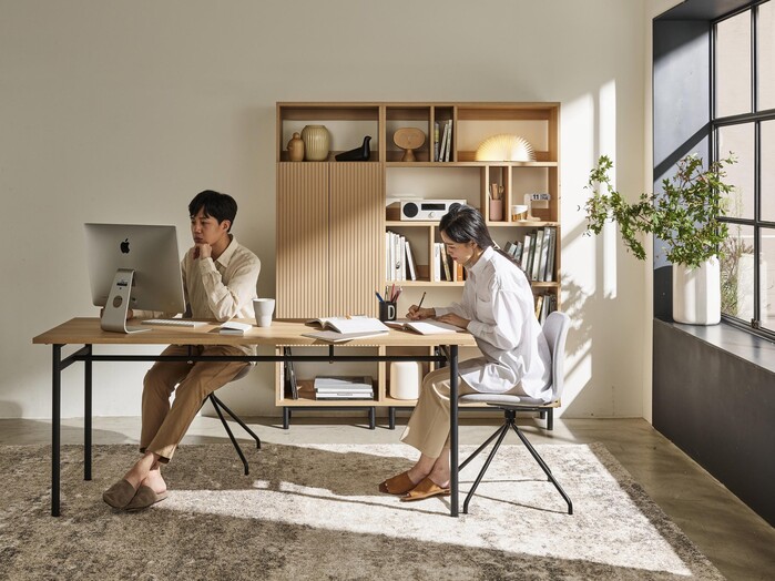 이에 한샘은 집 안에서 시간을 보내는 다양한 활동을 지원하는 가구들을 출시했다. ‘유로 501 플랫’은 통일감 있는 색상과 소재를 사용한 책상, 책장 모듈로 집을 홈카페, 홈바, 홈오피스 등 다양하게 꾸밀 수 있다.
