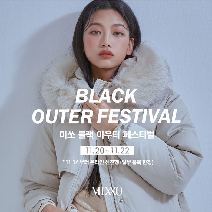 [메가경제=최낙형 기자] 이랜드의 여성 SPA 브랜드 ‘미쏘(MIXXO)’가 오는 20일부터 22일까지 블랙프라이데이를 기념해 ‘미쏘 블랙 아우터 페스티벌’을 진행한다고 18일 밝혔다.