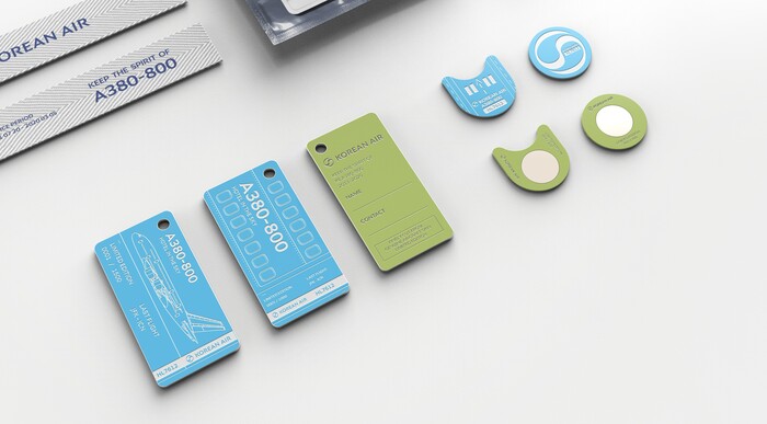 네임택은 2가지 디자인으로 출시한다. 2층 대형기라는 A380 기종의 특장점을 표현한 ‘플라이트(항공기)’형과 미니멀한 디자인을 강조한 ‘윈도우(창문)’형이다. 소비자의 취향에 따라 디자인을 선택할 수 있다. 네임택에는 A380의 별칭 ‘하늘 위 호텔(Hotel in the Sky)’ 문구를 새겨넣었다.