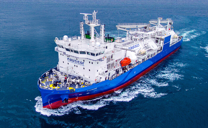 ▲ 현대미포조선이 건조한 7500 입방미터(㎥)급 LNG벙커링선의 시운전 모습 [사진= 현대중공업그룹] |