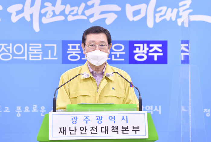 ▲ 이용섭 광주시장이 15일 오후 광주시청 브리핑룸에서 열린 온라인 브리핑에서 17일부터 23일까지 코로나19 특별방역 주간을 선포하고 일부 시설의 방역 수칙을 강화한다고 발표하고 있다. 이에 따라 유흥시설과 실내체육시설, 독서실 및 스터디카페 등 영업이 밤 10시부터 다음날 오전 5시까지 제한된다. [광주시 제공=연합뉴스] |