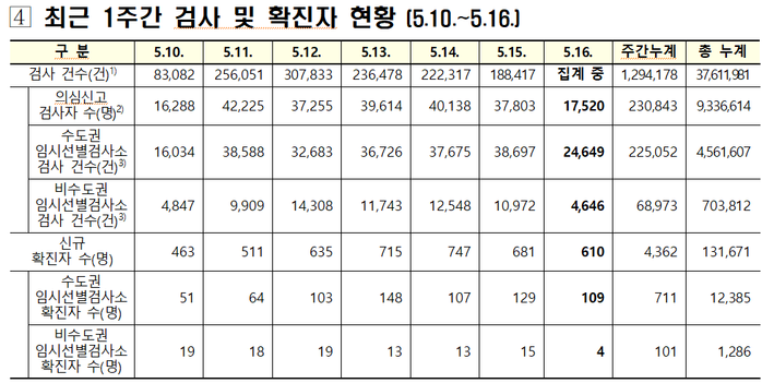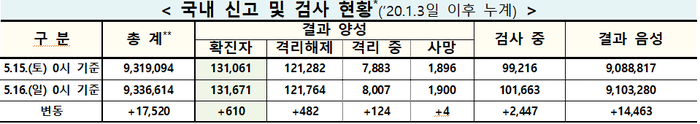 중앙방역대책본부(방대본)는 16일 0시 기준으로 코로나19 신규 확진자가 610명 새롭게 발생해 지금까지 누적 13만1671명(해외유입 8729명)으로 집계됐다고 밝혔다.