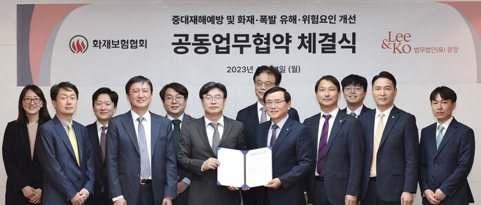 | ▲화재보험협회와 법무법인(유) 광장은 중대재해사고를 사전에 방지하기 위해 지난 24일 업무협약을 체결했다. |