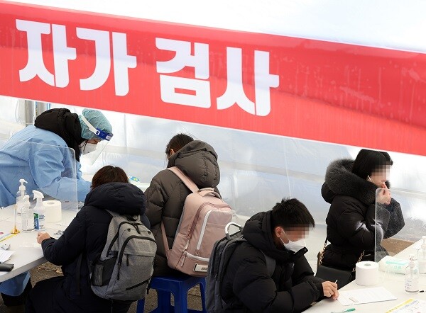 ▲ 오미크론 확산에 대응하기 위한 코로나19 검사·진료체계가 전면 전환된 3일 오전 서울 광진구보건소 선별진료소에 마련된 신속항원검사소에서 시민들이 자가진단키트를 이용해 검사하고 있다. [사진=연합뉴스] |