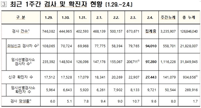 중앙방역대책본부(방대본)는 4일 0시 기준으로 코로나19 신규 확진자가 2만7443명 발생해 누적 93만4656명(해외유입 누적 2만5967명)으로 집계됐다고 밝혔다.