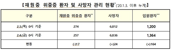 24명이 더 목숨을 잃으면서 누적 사망자는 6836명이 됐고, 누적 치명률은 0.73%를 기록했다.