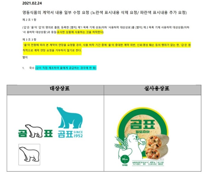 한 법조계 관계자는 "갑(영동식품) 입장에서는 계약 갱신 권리를 저해 받을 소지가 있는 조항"이라고 설명했다.