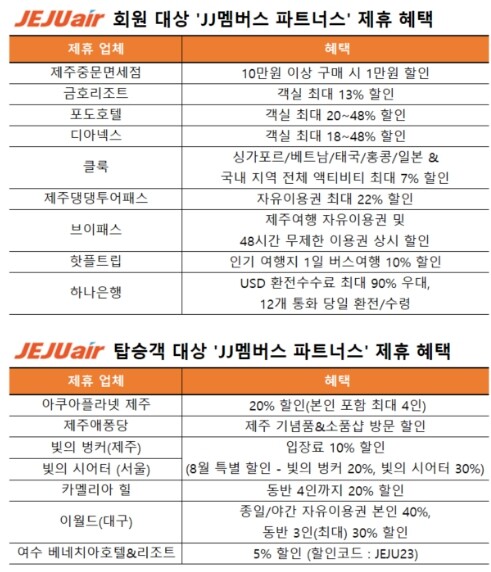 제주항공은 고객들에게 여객 서비스 제공에만 국한하지 않고 전체 여행 일정에서 보다 합리적이고 특별한 경험을 제공하고자 ‘JJ멤버스 파트너스’ 프로그램을 운영하고 있다.