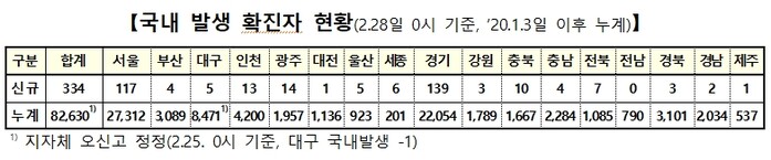 ▲ 28일 0시 기준 코로나19 국내발생(지역발생) 확진자 현황. [출처= 중앙방역대책본부] |