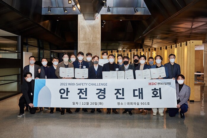 HDC현대산업개발은 현장 안전관리 우수 사례와 아이디어 발굴을 위해 임직원을 대상으로 제1회 안전 경진대회 '2022 With SAFETY CHALLENGE' 시상식을 진행했다고 21일 밝혔다.