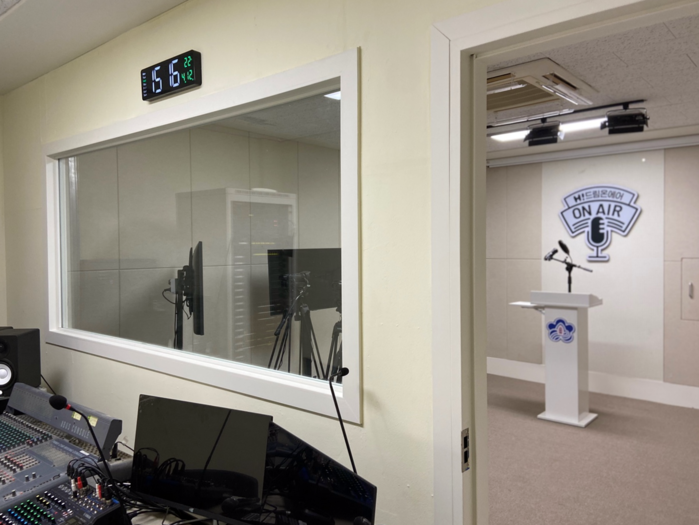 ▲ 'H! 드림온에어' 1호 학교로 최신 방송장비 교체 및 공간 리뉴얼 공사를 마친 인천 신현북초등학교의 방송실 모습 [사진=현대홈쇼핑] |