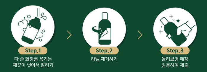 CJ올리브영은 그간 전국 30여 개 주요 매장에서만 공병 수거 캠페인을 시범적으로 운영해왔다. 이 캠페인은 다 쓴 화장품 용기의 라벨을 제거하고 씻어서 가까운 매장에 가져다주면 된다.