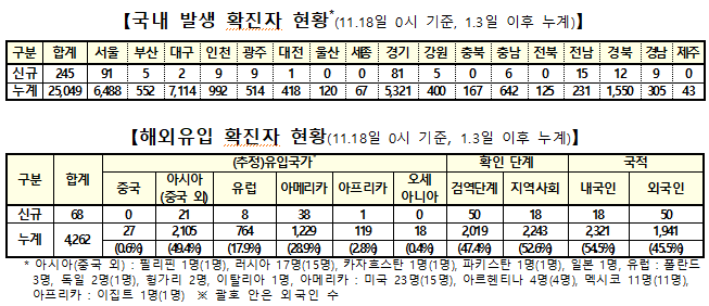 지역발생 확진자 245명은 전날(202명)보다 하루 새 43명이나 급증한 것이며, 지난 9월 2일(253명) 이후 77일만에 가장 많은 수치다.