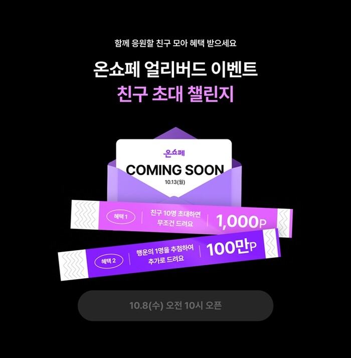 이번 행사는 온쇼페 초대장을 공유하면 1,000 엘포인트(L.POINT)를 적립 받는 방식으로 진행된다. 적립금은 온쇼페 시작일인 오는 13일 일괄 지급되며, 초대를 통해 신규 가입한 사람에게도 엘포인트가 지급된다.