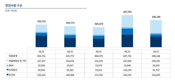 인건비와 마케팅비는 전분기 대비 각각 15%, 65% 감소한 것으로 집계됐다.