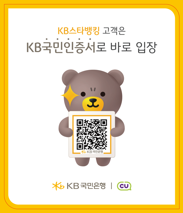 | ▲KB국민은행이 비지에프리테일과 제휴해 CU편의점 무인(하이브리드)점포에 KB국민인증서로 출입할 수 있는 ‘QR 인증’ 서비스를 선보인다. [사진=KB국민은행] |