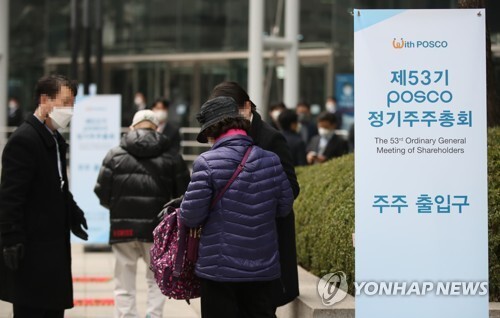 | ▲ 12일 오전 서울 강남구 포스코센터에서 열린 제53기 정기주총에 참가하기 위해 주주 등이 입장하고 있다.[서울=연합뉴스] |