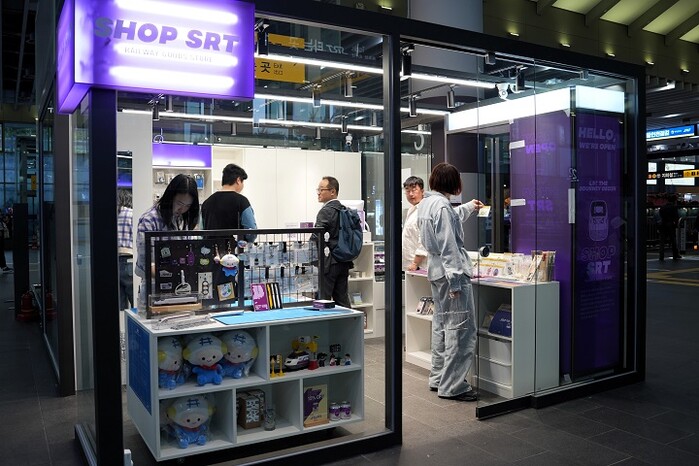 [메가경제=문기환 기자] SRT 운영사 국민철도 에스알이 25일 수서역에 SRT 공식 굿즈샵 ‘샵에스알티(#SRT)’를 개점했다.
