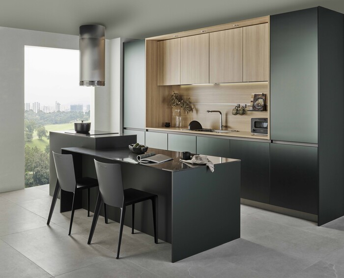 부엌 신제품 ‘유로 베일’은 알루미늄 프레임 타입을 기반으로 전면을 열과 스크레치에 강한 표면제(C/HPM,Compact HPM)로 마감해 내구성을 높였다. ‘라이트 우드’와 ‘러프 우드’, ‘다크 우드’ 등 다양한 무늬목 컬러를 통해 실제 목재와 같은 질감을 느낄 수 있게 했다.